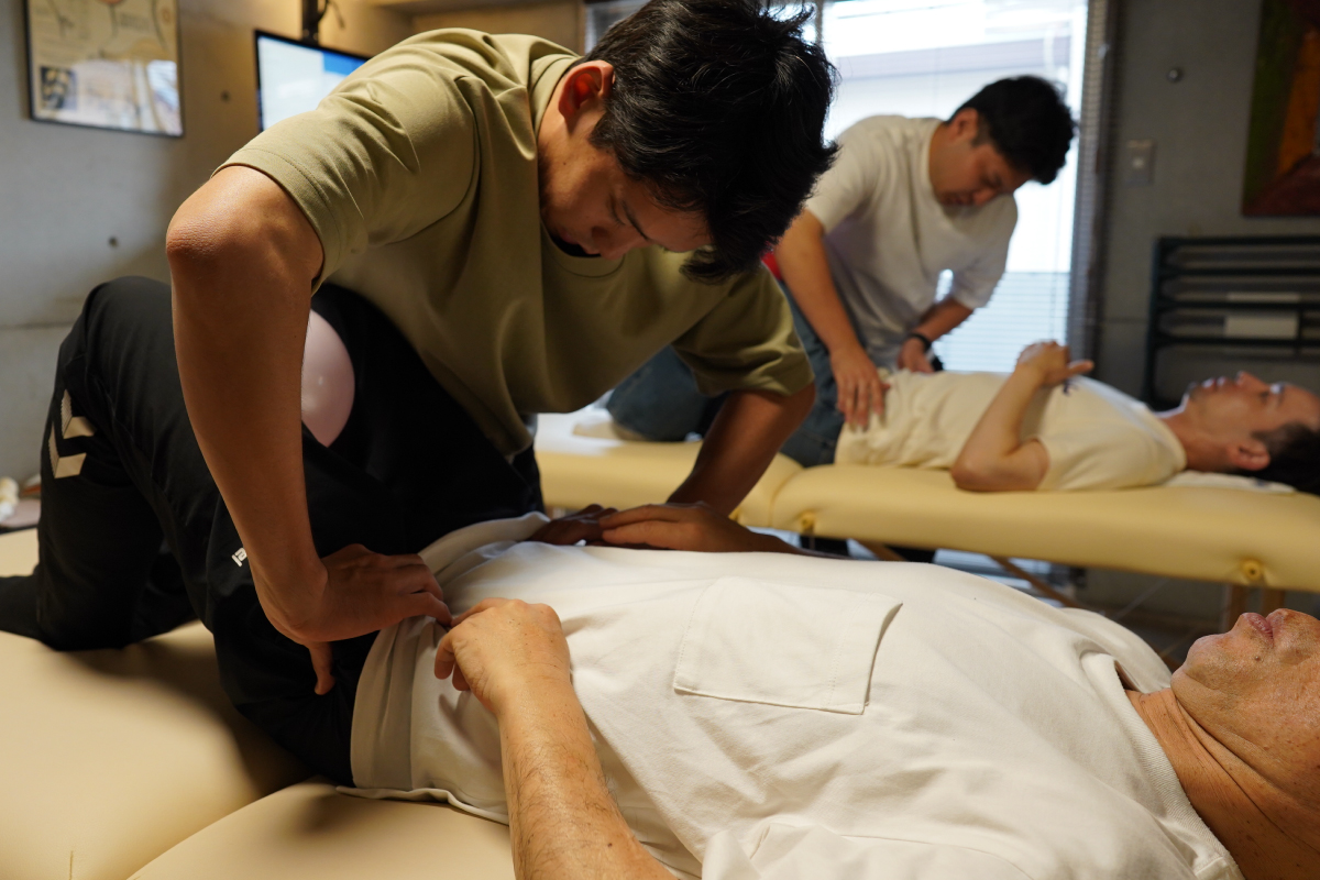 動きやすい服装でご来店いただければ、そのまま施術・トレーニングを受けていただけます。