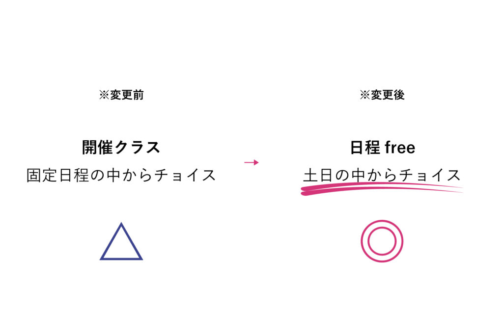 スクールのカリキュラムに変化はありませんが、今までより日程選びの自由度が増して参加してもらいやすくなります。