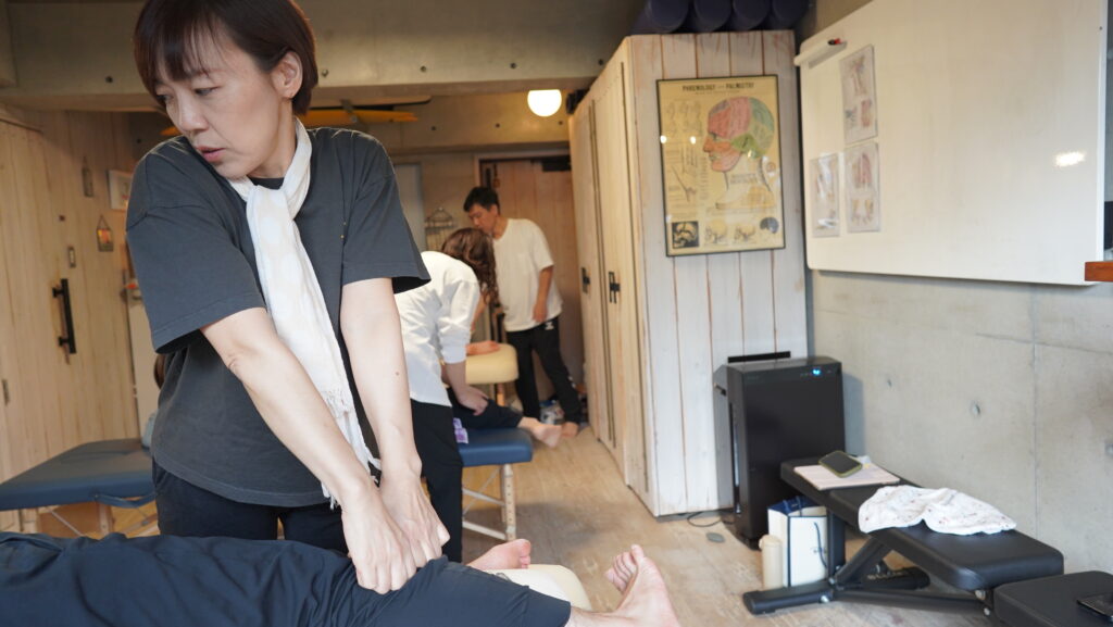 そして踵が足の中に入り込んで踵骨が動けなくなっている人に対しての踵骨の矯正も行いました