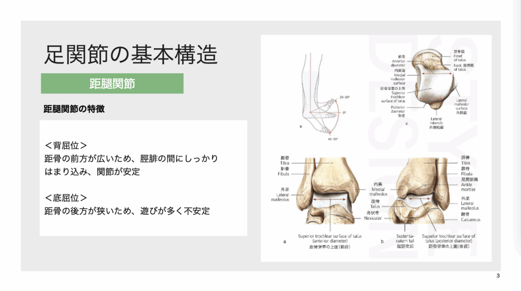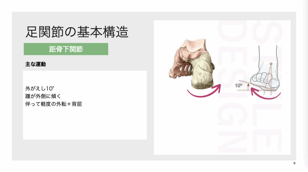 過度な外返し状態の距骨、踵骨のアライメントを整えて、「支えられる足」のベースづくりから行いました