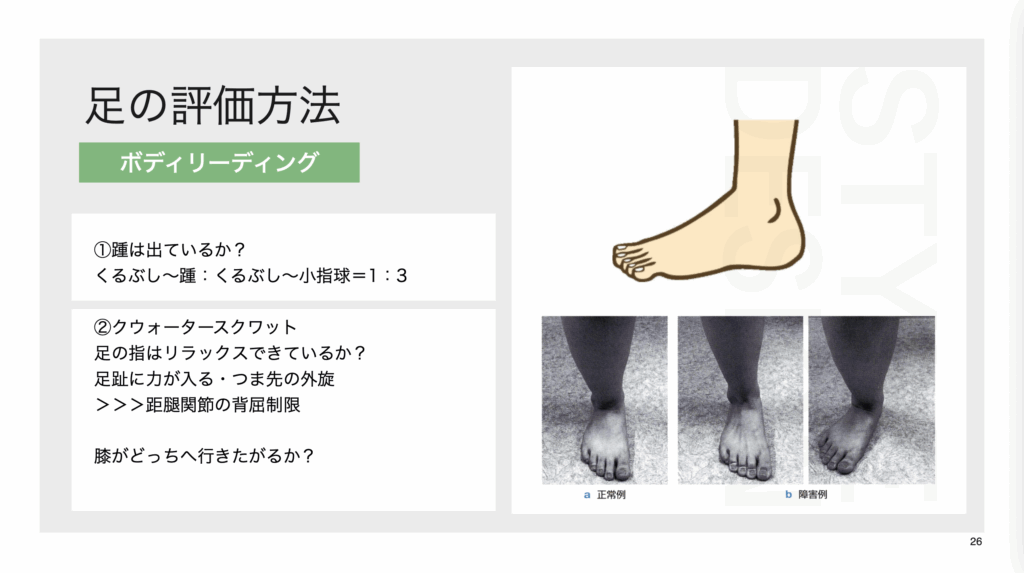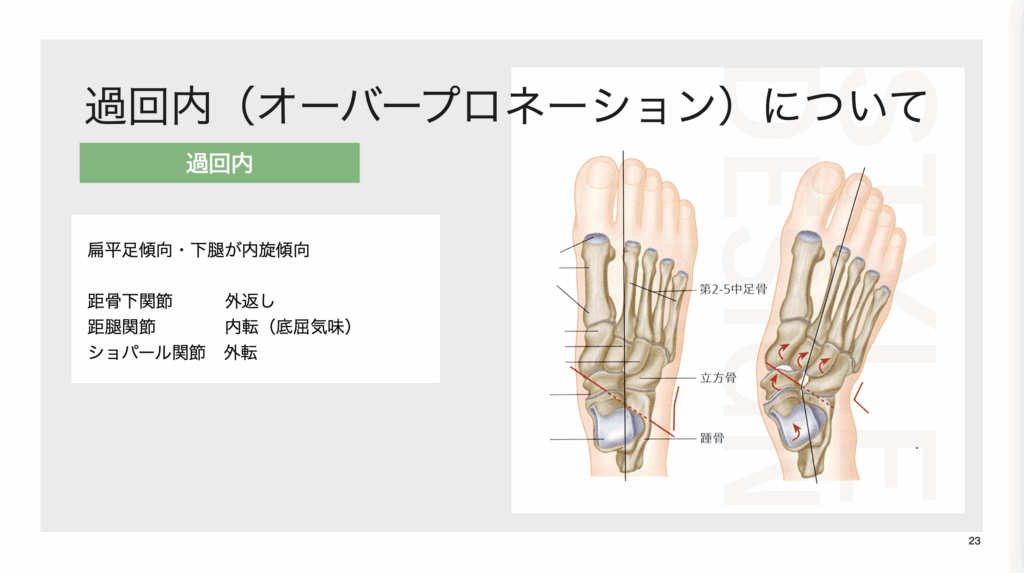 研究会では、過回内が起きてしまった足を立て直すために、2つのことの注目しました