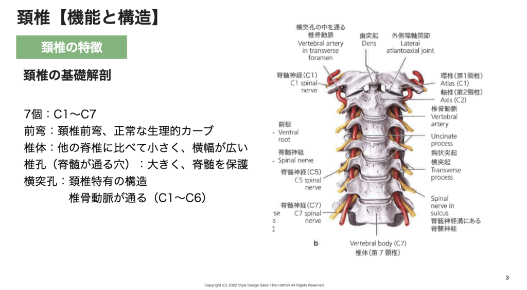 骨の中を椎骨動脈が通過していたり、神経根も狭い場所に密集しています