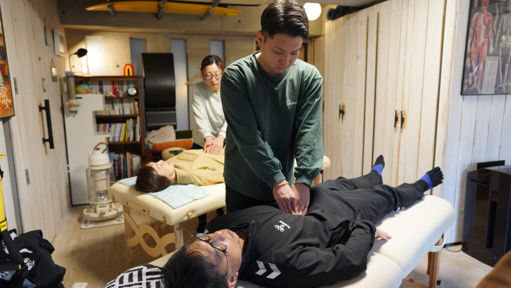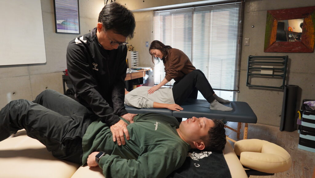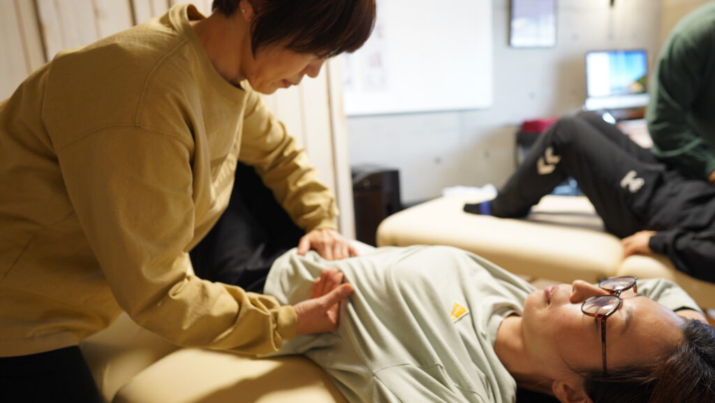 特に横隔膜の下にある胃と肝臓の可動力は、姿勢・呼吸・動作に大きな影響を与えることがわかっているので胃と肝臓、結腸に対してのアプローチを行いました