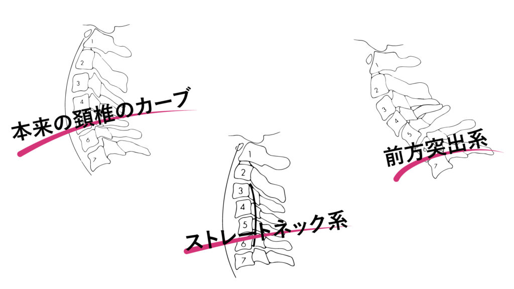 実際にはストレートネック系、前方突出系以外にも複合型のパターンもありますが、最初は2つに分けて考えられるようにしていきましょうという研究会でした。